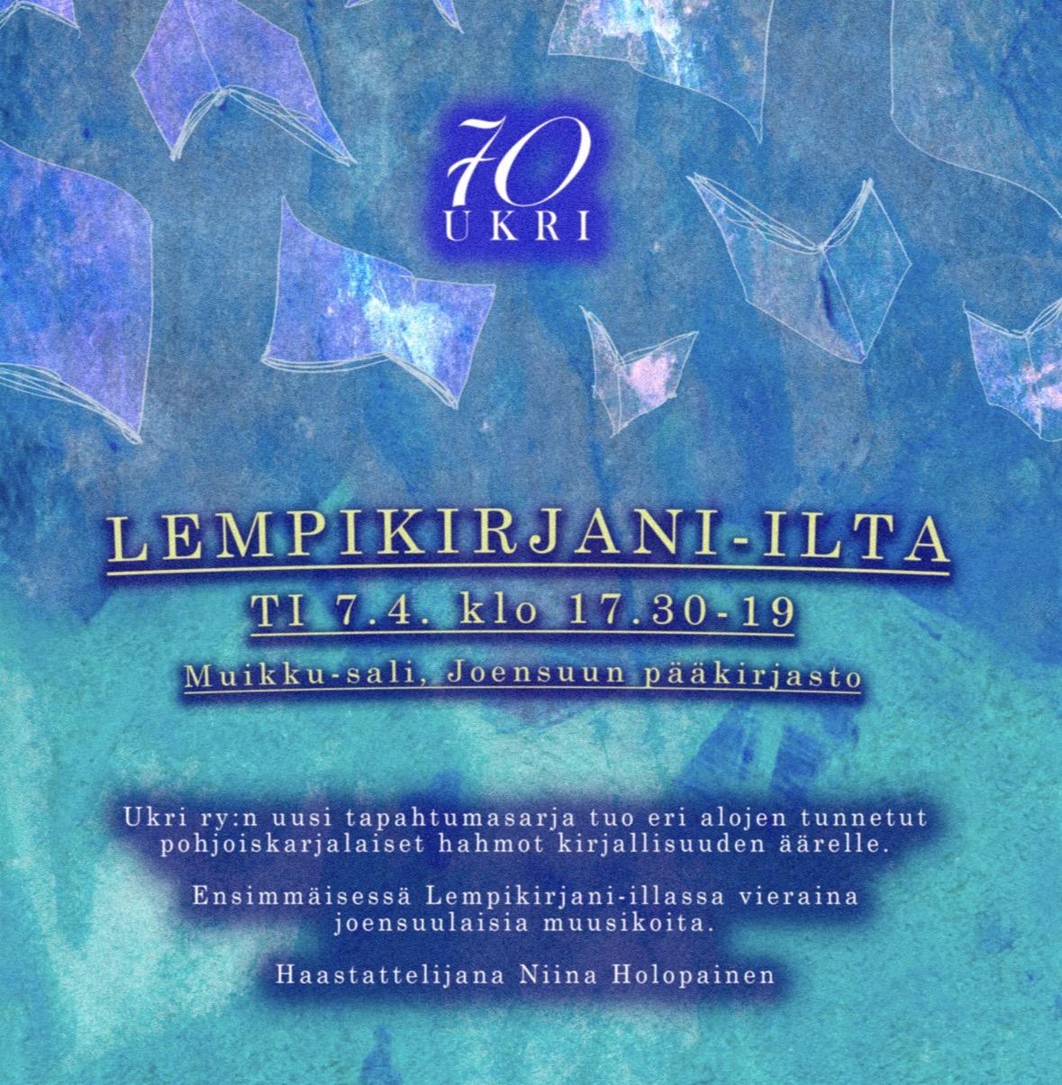 Ukri aloittaa huhtikuussa uuden Lempikirjani-tapahtumasarjan, jossa vieraaksi saapuu tunnettuja pohjoiskarjalaisia. Ensimmäisessä Lempikirjani-illassa Niina Holopaisen haastateltaviksi saapuu kaksi…